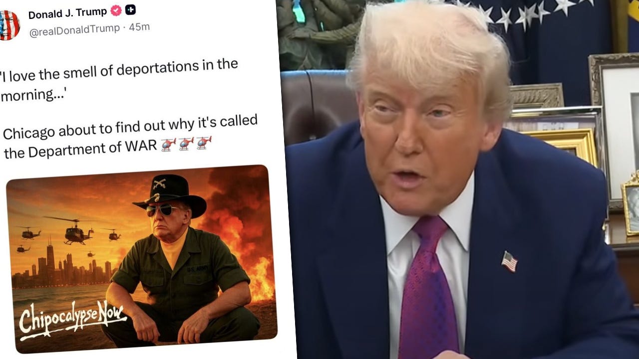 Trump even doubled down with his theatrical poster: helicopters, fireballs, “Chipocalypse Now,” as if America were a Michael Bay film waiting for the big explosion. Governor Pritzker called him a wannabe dictator, and for once, the governor wasn’t exaggerating. Soldiers in the streets aren’t about safety. They’re about control. They’re about the photo op. And they’re about reminding ordinary Americans who’s really in charge.