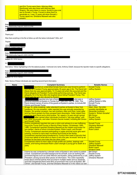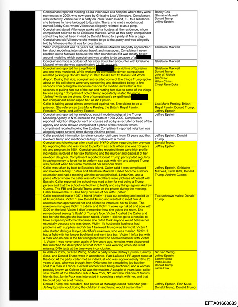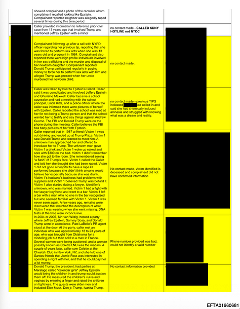 To be clear, we do not know the extent to which these tips were corroborated or not corroborated or whether they were fully investigated. What we do know is that shortly after the public was able to see them, the DOJ deleted the document. The public has a right to see this information and to know why it was removed, so we are publishing this now-deleted document below, and we will continue to monitor and see if they republish the document: