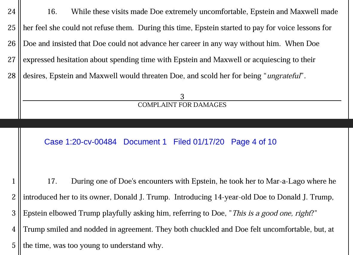 The release also included a civil lawsuit filed by a Jane Doe describing abuse that began when she was 13 years old. The complaint recounts Epstein bringing her to Mar-a-Lago, where he introduced her to Donald J. Trump when she was 14. According to the filing, Epstein joked about her in Trump’s presence, and Trump responded with a smile and nod. These are sworn allegations, not commentary, and they underscore why full transparency matters. Survivors have already endured the unimaginable. Watching the federal government shield the powerful while erasing the record retraumatizes them all over again.
