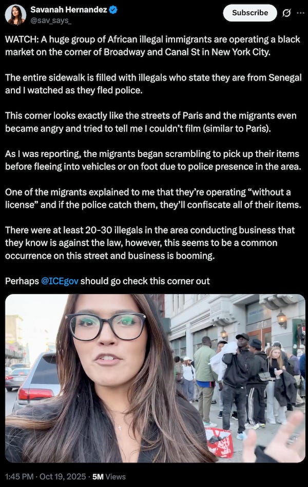 And let’s be real: this was never about counterfeit goods. It was political theater. A made-for-camera stunt to feed the right-wing ecosystem that thrives on images of brown men in cuffs. The same ecosystem where Turning Point influencers get more attention for calling out street vendors than Congress does for not passing a budget. ICE didn’t just raid Canal Street; they auditioned for a Trump campaign ad.