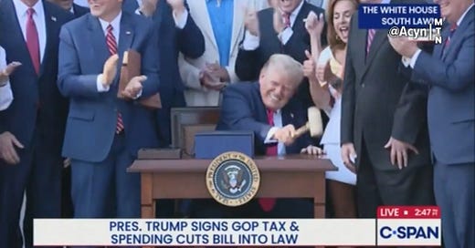 Well, here we are: July 5th, the day after the fireworks, the BBQs, and the patriotic Instagram posts. But behind all the red, white, and blue fanfare lurked a darker truth. Because while Americans were busy lighting sparklers and waving flags, President Trump, in true Trumpian fashion, signed the Big Beautiful Bill—a title only someone allergic to detail and allergic to facts could conjure up with a straight face.