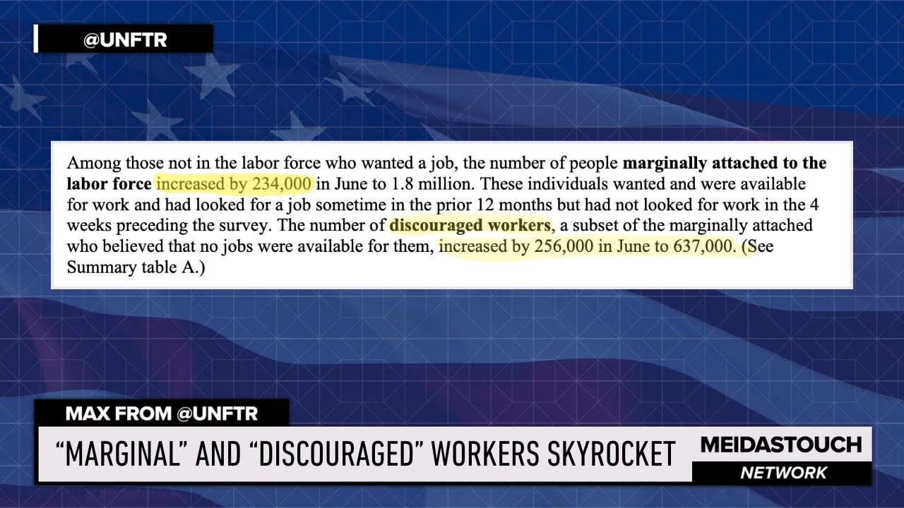 Marginal workers increased by 234,000 in June and discouraged workers went from 256,000 to 637,000.