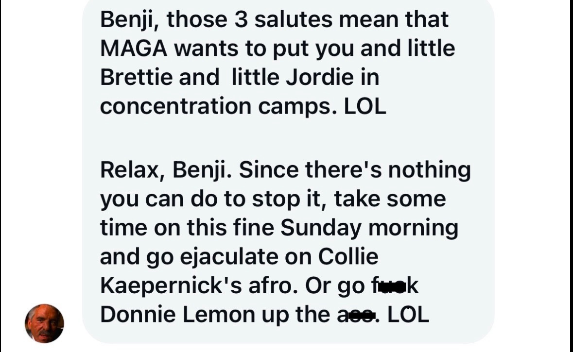 Here is one of many examples of the type of messages Trump supporters and MAGA people send us.