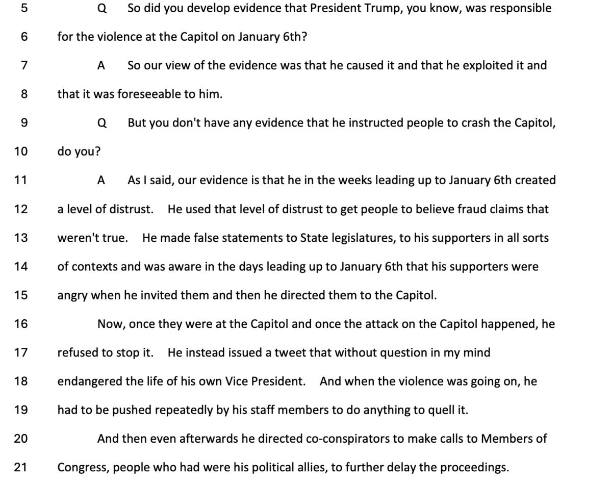 When pressed on Trump’s role in the Capitol attack, Smith testified that while Trump did not explicitly order the breach, the violence was foreseeable and exploited.