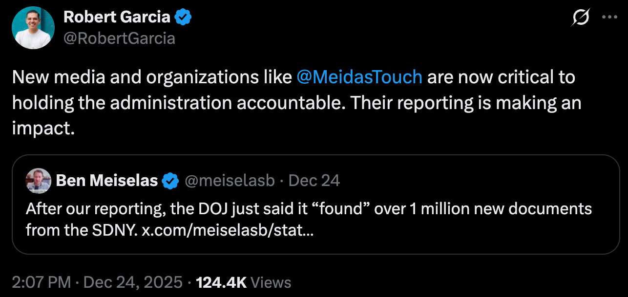 On New Year’s Eve, we learned that the Justice Department is now reviewing more than 5 million pages of records tied to Jeffrey Epstein that were never previously turned over. Based on what I’ve seen, and if you’ve been following our reporting, we know this is likely only the floor, not the ceiling.