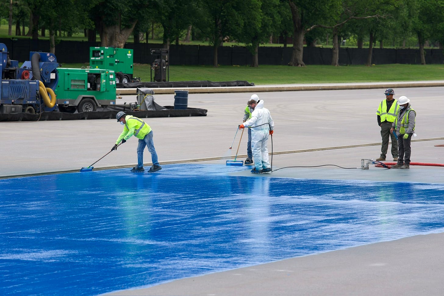 … Trump drained the Reflecting Pool and had workers painting the ground underneath it blue so it would look more like a swimming pool.