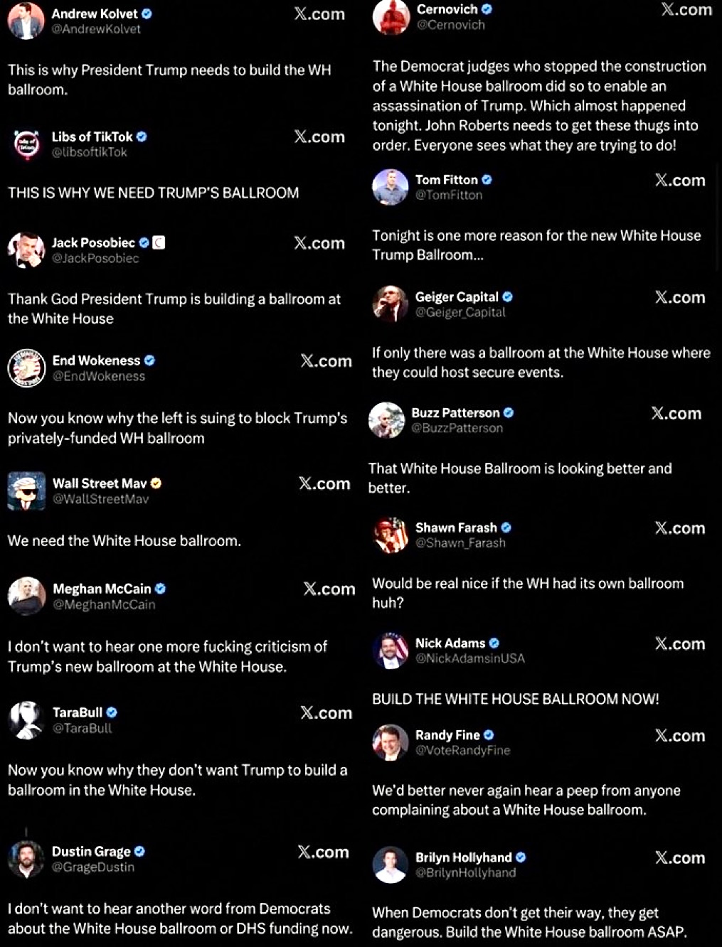 … Immediately after the incident, MAGA supporters received their marching orders and blasted out coordinated propaganda posts on X trying to use it as justification for Trump’s ballroom monstrosity.