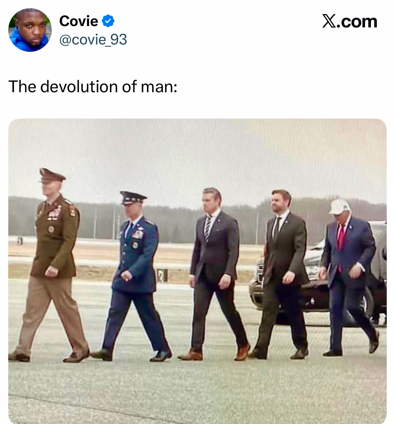 … One user on X went viral with this caption of a photo of Trump arriving at the ceremony: