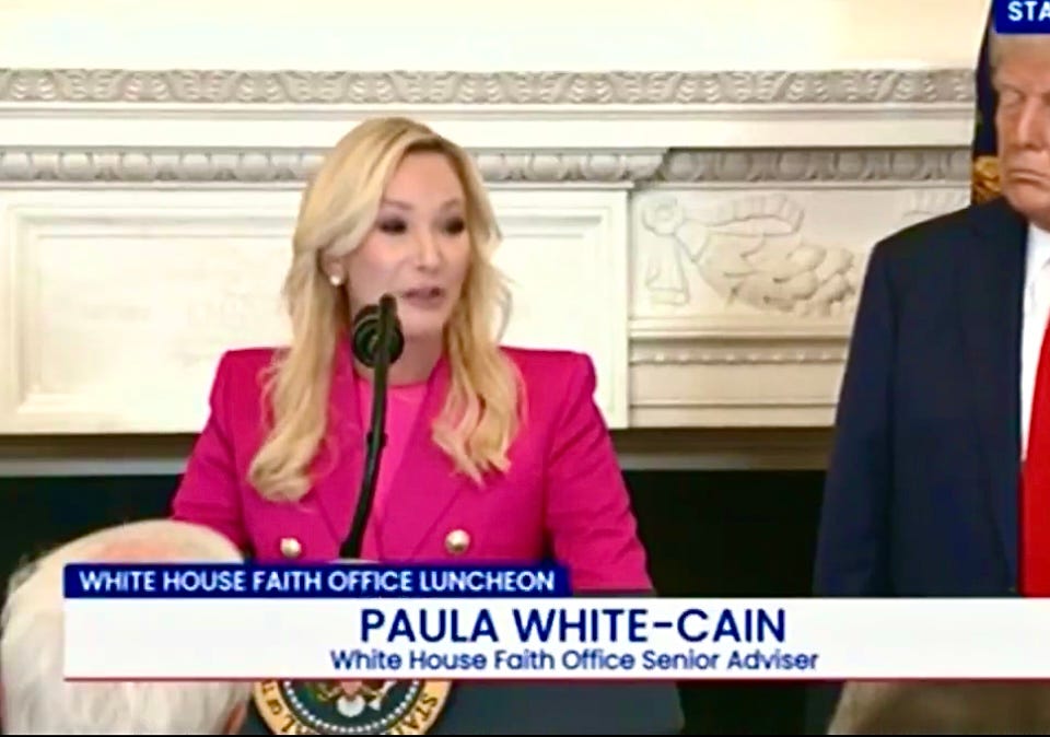 … The WH held a prayer luncheon today run by Faith Director Paula White-Cain with Trump in attendance: “America's spiritual and moral foundations have been restored. Today's not just a luncheon. It is a moment of divine alignment. And we believe that God is raising up business leaders who don't separate faith from enterprise but who see their platforms as their businesses and instruments for eternal impact.”