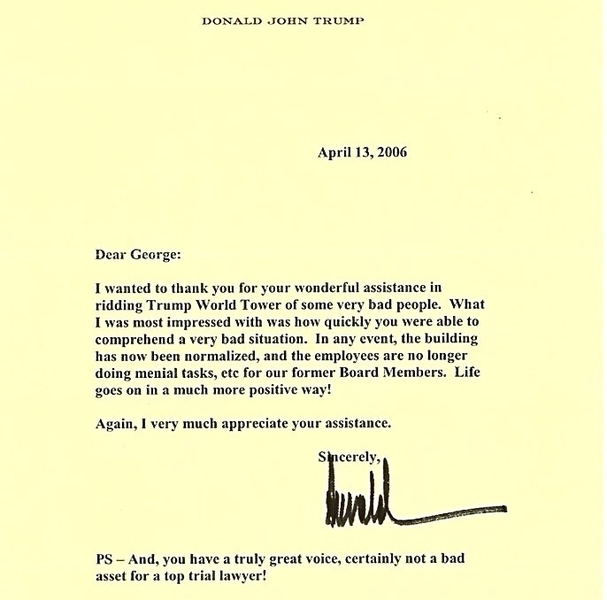 … Both George Conway and Keith Olbermann posted typed letters that they received from Trump years ago which were also signed the same way as the Epstein birthday card with just Trump’s first name. Conway’s from 2006 and Olbermann’s from 2014.