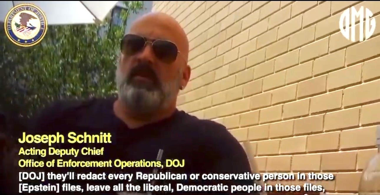 … DOJ Acting Deputy Chief Joseph Schnitt was just recorded on a hidden camera having a lengthy conversation with one of James O’Keefe’s female undercover operatives talking about their handling of the Epstein files. From the video: “They’ll redact every Republican or conservative person in those files and leave all the liberal, Democratic people in those files.”