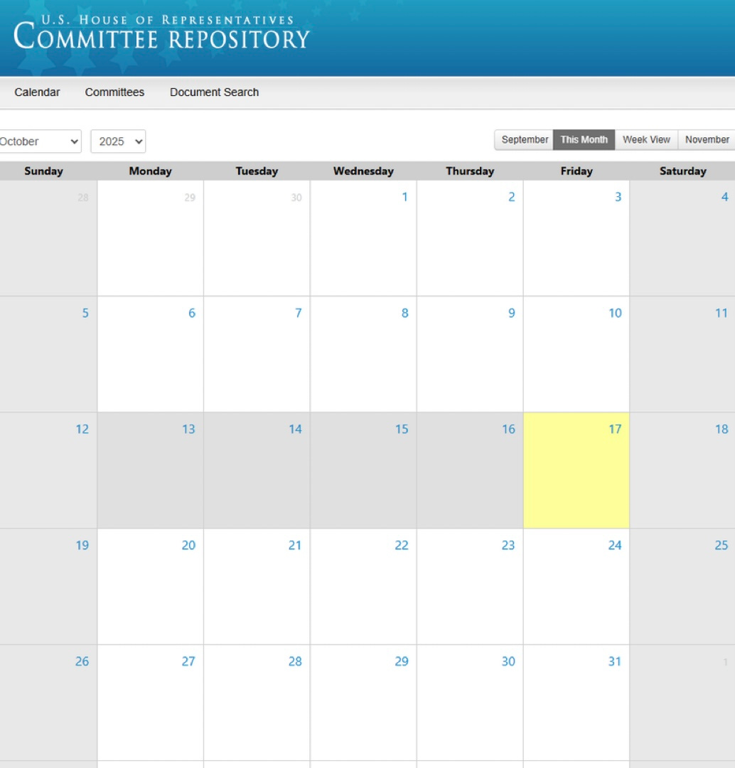 … House Committee Calendar for the month of October. Zero hearings or business being conducted: