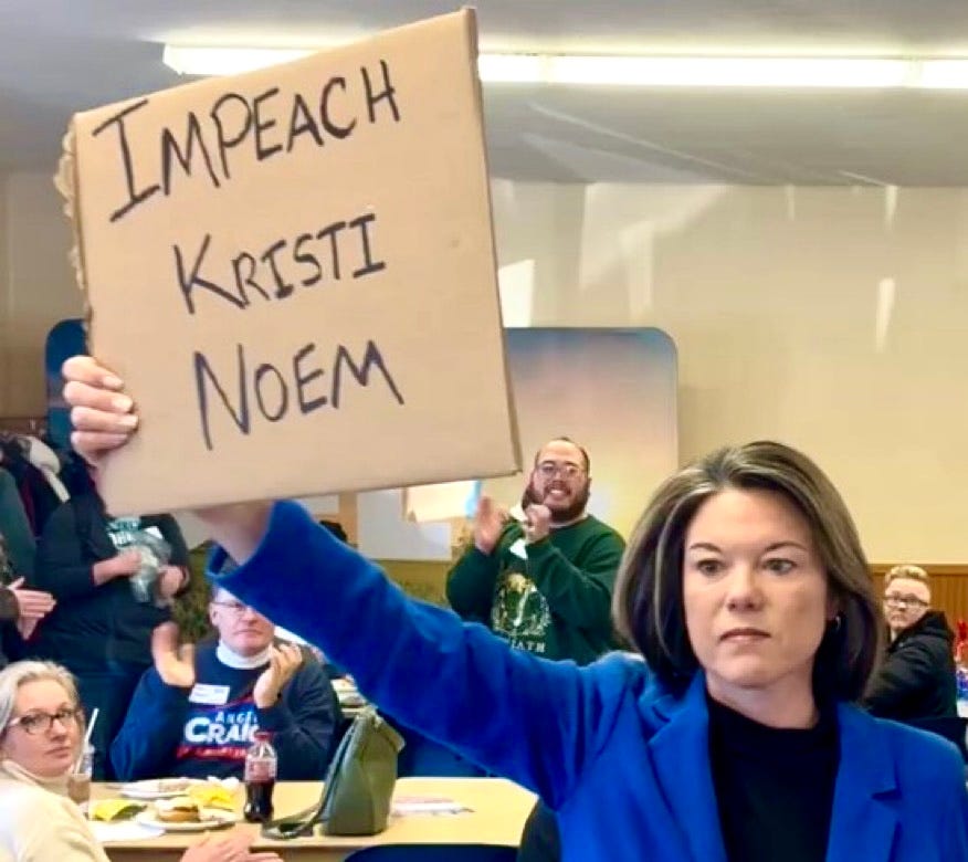 … Rep. Jeffries, Clark, and Aguilar issued a joint statement on behalf of House Dem leadership: “Kristi Noem should be fired immediately, or we will commence impeachment proceedings in the House. We can do this the easy way or the hard way.”