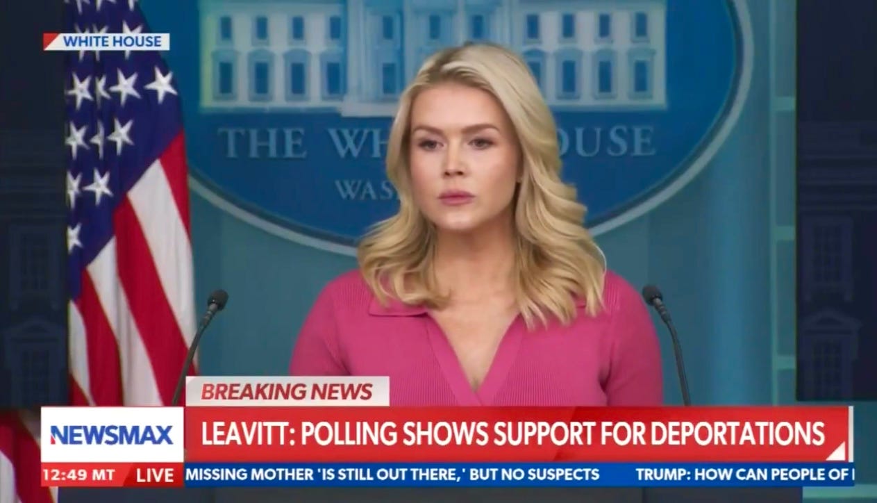 … Karoline Leavitt was asked about ICE interfering in the midterms with voter intimidation. Q: “Steve Bannon recently said 'we're gonna have ICE surround the polls come Nov.' Is that something the president is considering? Leavitt: I can't guarantee an ICE agent won't be around a polling location, but what I can tell you is I haven't heard the president discuss any formal plans.”