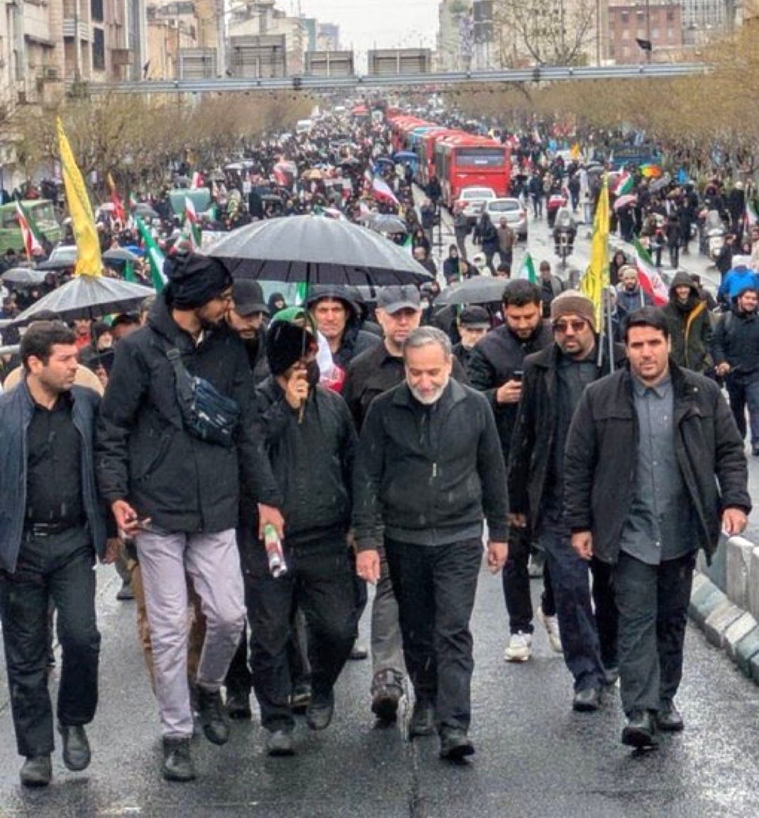 … Iran’s National Security Council chief Ali Larijani responded by posting pictures of himself from earlier today with this caption: Mr. Hegseth! Our leaders have been, and still are, among the people. But your leaders? On Epstein’s island!”