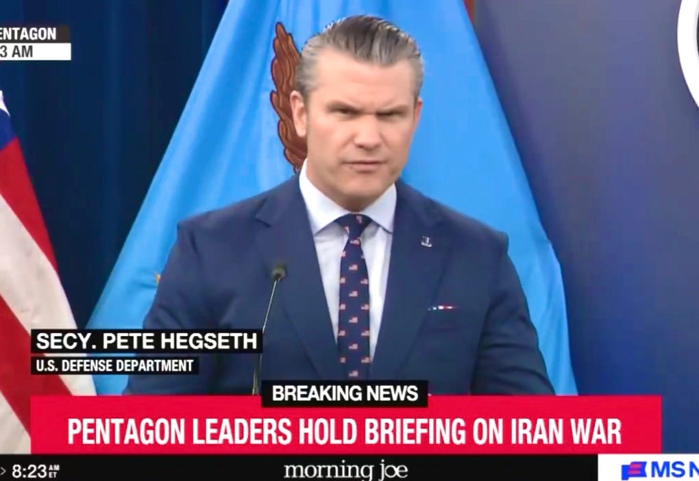 Q - “On the girl’s school - there has been reporting that indicates a preliminary inquiry has determined that the airstrike was carried out by the US. Hegseth: We’re not going to let reporting lead us or force our hand into indicating what happened in a particular situation. There’s only one entity in this conflict between us and Iran that never targets civilians.”
