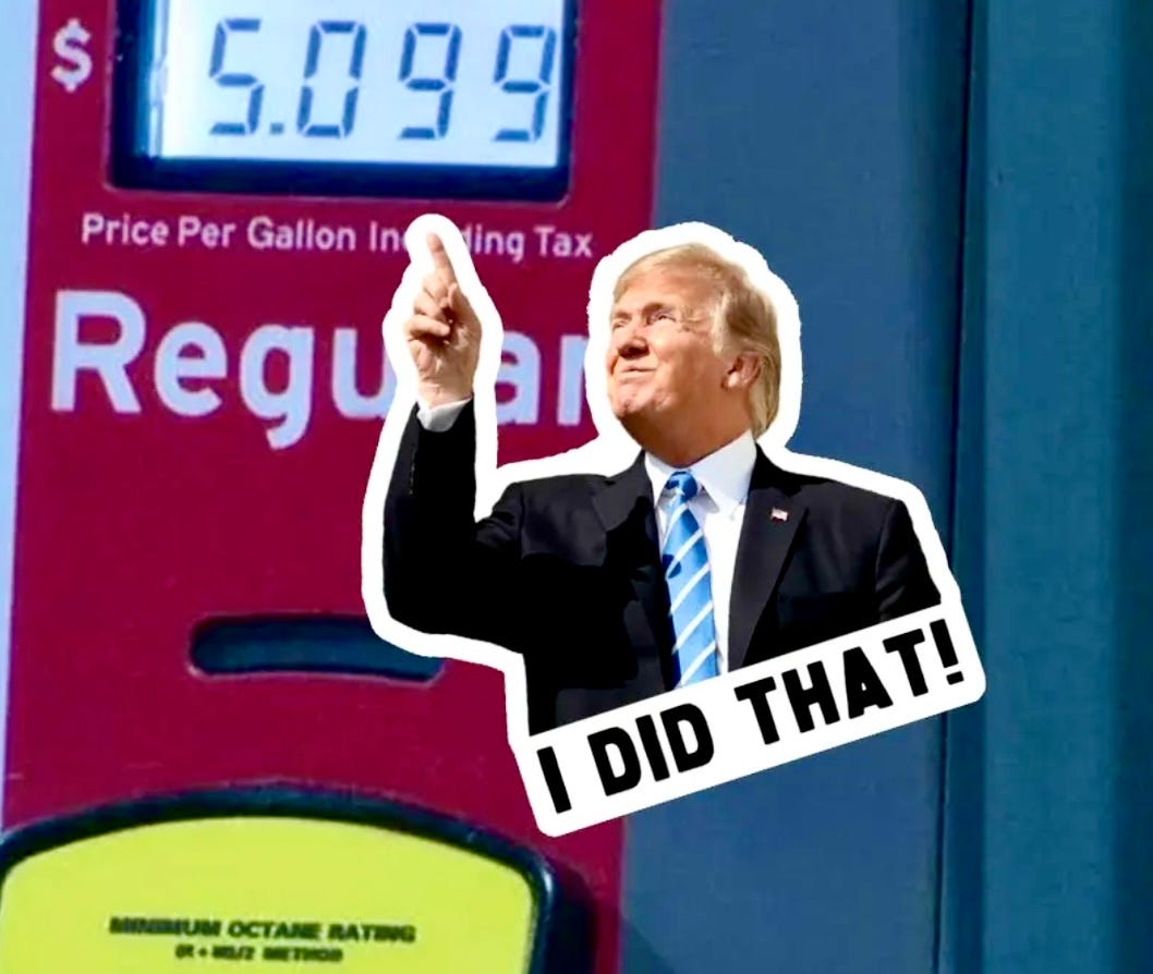We gear up next week for No Kings. I had an idea I posted on social media last night for organizers. During the supply chain crisis caused by covid in 2021, Trump supporters liked to put stickers of Biden on grocery items like steak. They did the same with gas pumps when prices spiked after Russia invaded Ukraine. Maybe we could pass these out to people at No Kings. Just a thought.