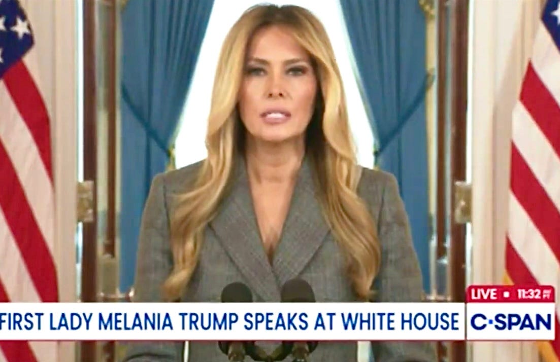 … Melania Trump addressed the media today on Epstein in a surprise statement, although she took no questions from reporters. She lashed out at people connecting her with Epstein and Ghislaine Maxwell, and named several people she has recently filed lawsuits against for social media posts and television commentary: