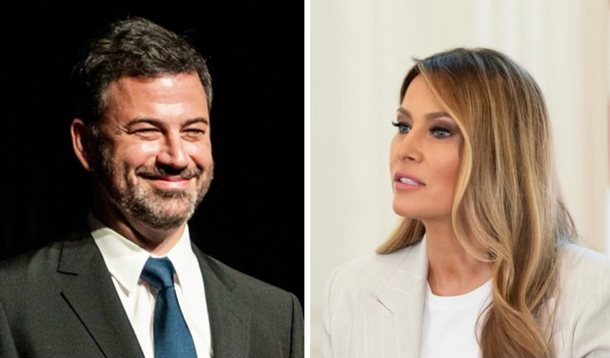 … Two days before the event, Jimmy Kimmel held a parody of the dinner an annual event honoring journalism and funding scholarships. He made this joke, which led to Melania Trump making a rare social media post today. Kimmel: “Our First Lady, Melania, is here. Look at Melania, so beautiful. Mrs Trump, you have a glow like an expectant widow.”