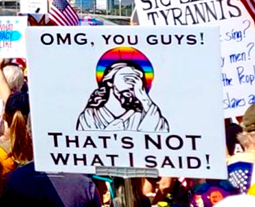 I saw one that said “My husband didn’t die defending our country for this bullshit”