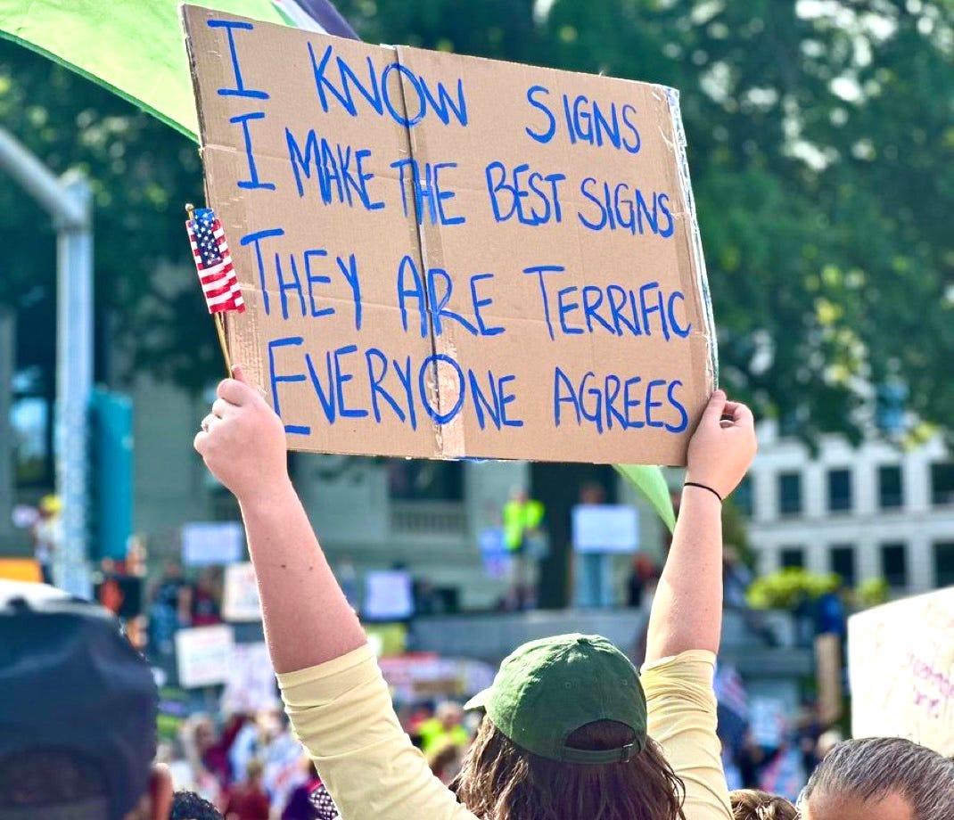 Here is #11-20 of my favorite protest signs from around the country at Saturday’s massive No Kings protests.