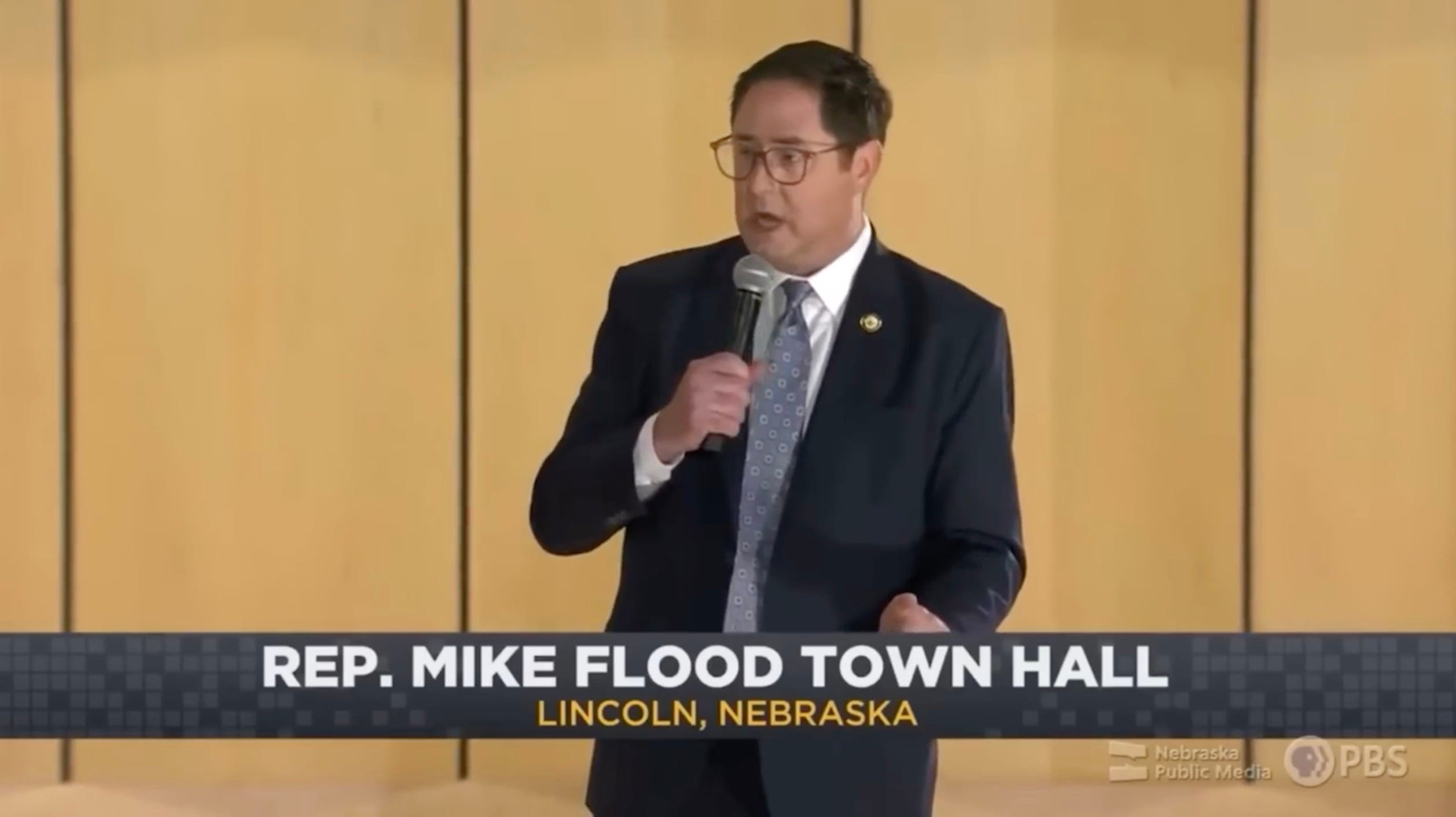 Enter Representative Mike Flood in Lincoln, Nebraska, looking like he just walked off the set of a Fox Nation infomercial. He’s here to do what the NRCC memo told him: “Push back on Democrat fearmongering” and sell Trump’s massive domestic agenda like it’s a ShamWow. But wait… there’s more.