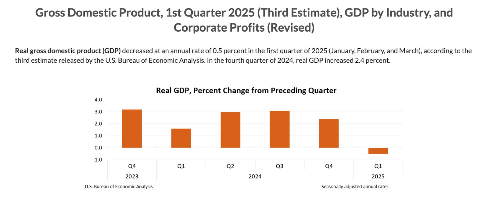 First Quarter GDP was revised and now reflects a half-percent decrease. It takes two consecutive quarters of negative growth for the statisticians to call an official recession so we’re on our way.