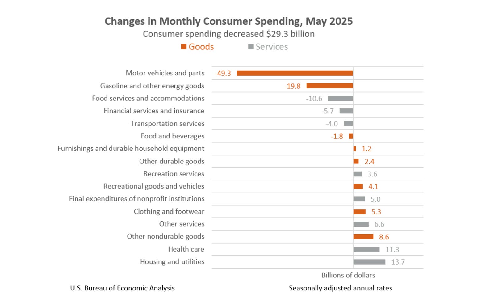 Clothing, recreation services and recreational goods and vehicles increased but essential spending like insurance, food, hotels, auto parts and car purchases all decreased. Healthcare spending is up, which is not a good sign by the way. And so is housing and utilities—also not a good sign.