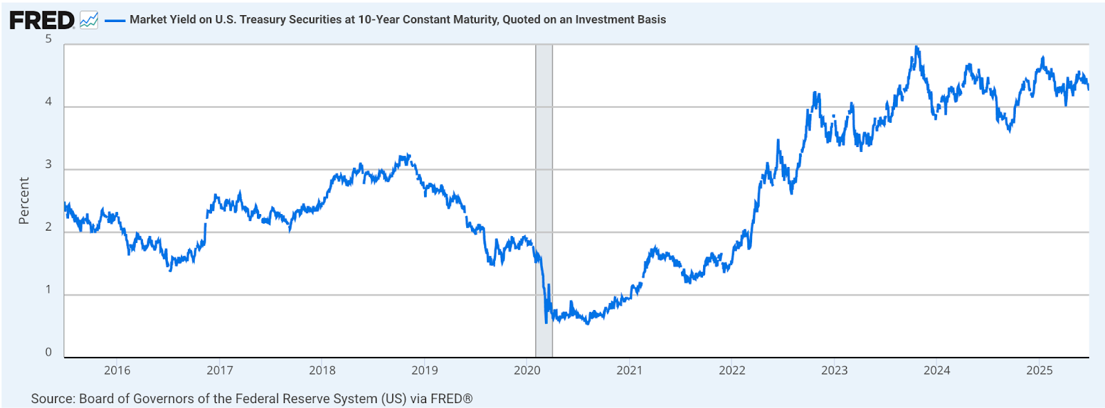 What’s more relevant is the Ten Year Treasury Yield (below).